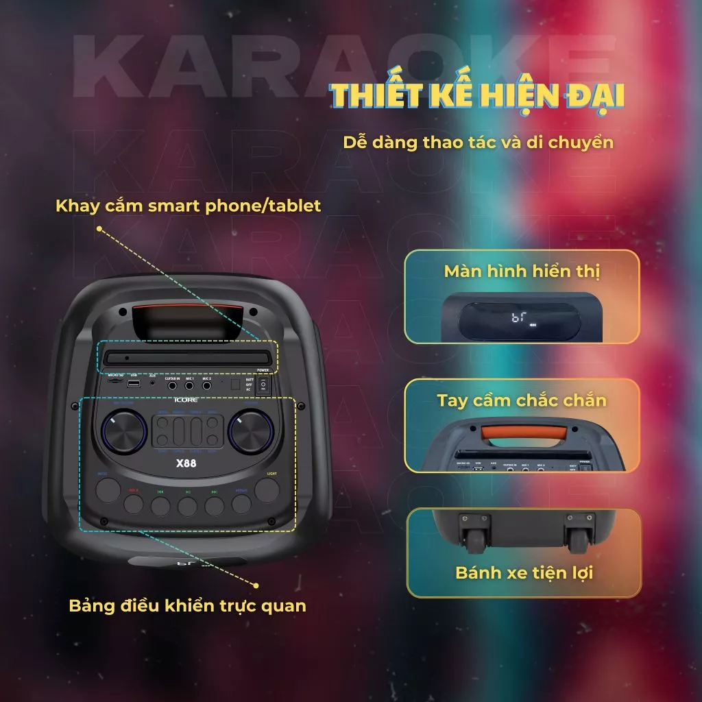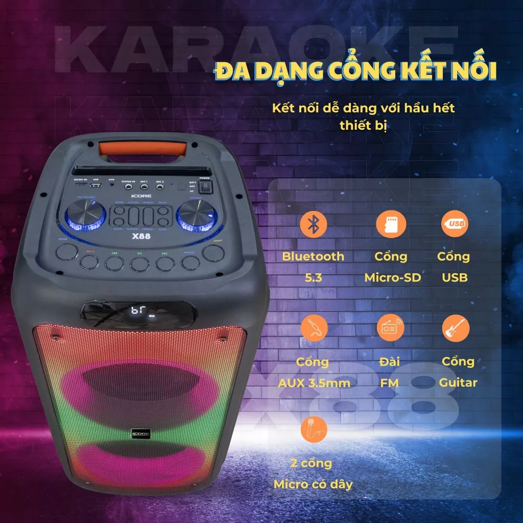 🔊 Bộ Loa Kéo Karaoke iCore X88 – Âm Thanh Cực Mạnh Mẽ, Trải Nghiệm Đỉnh Cao