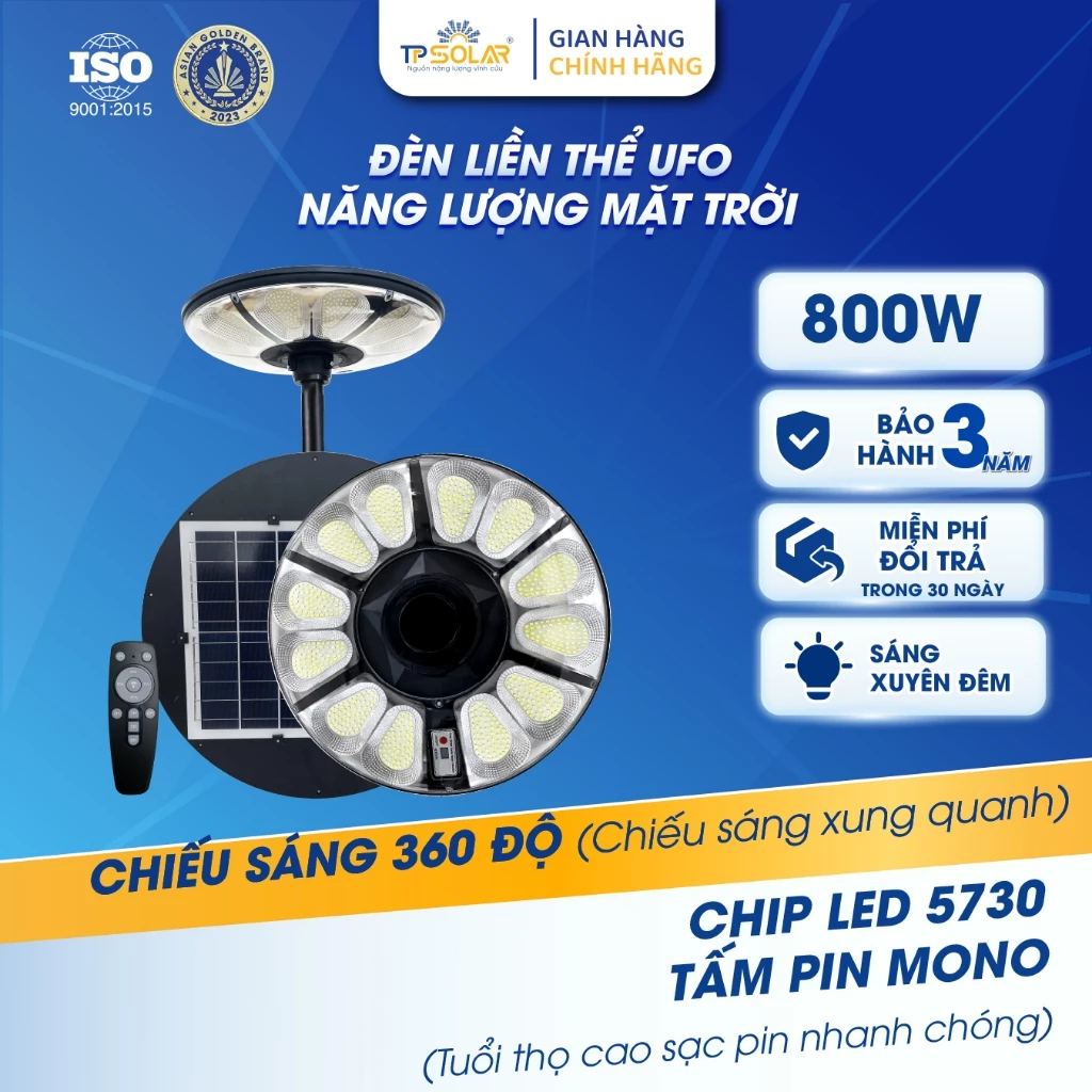 Đèn UFO Năng Lượng Mặt trời TP SOLAR TP-U800 Chiếu Sáng 360 Độ