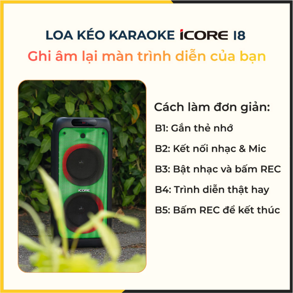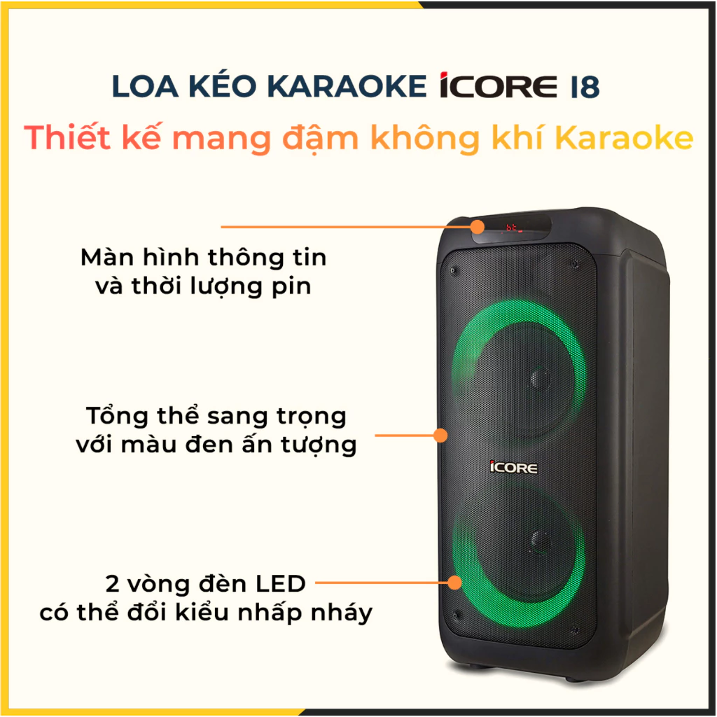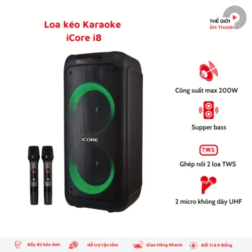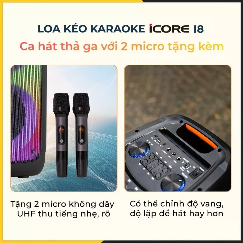 Loa Kéo Hát Karaoke iCore i8 Kèm 02 Micro UHF Cao Cấp