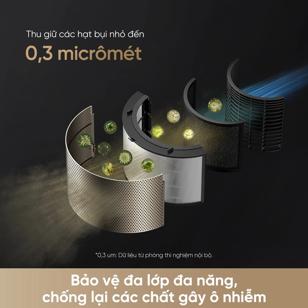 🌫️ Hiệu quả lọc mạnh mẽ: Loại bỏ đến 99,97% hạt bụi mịn PM2.5, PM10 và các chất ô nhiễm siêu nhỏ trong không khí.