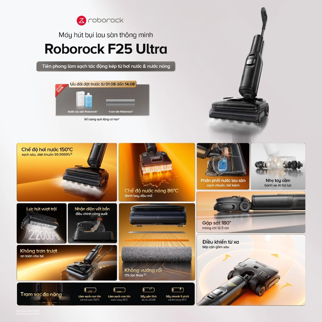 🚀 Roborock F25 Ultra – Máy Hút Bụi Lau Nhà Hơi Nước Nóng 22000Pa | Làm Sạch Toàn Diện, Chuẩn Đẳng Cấp Cao Cấp